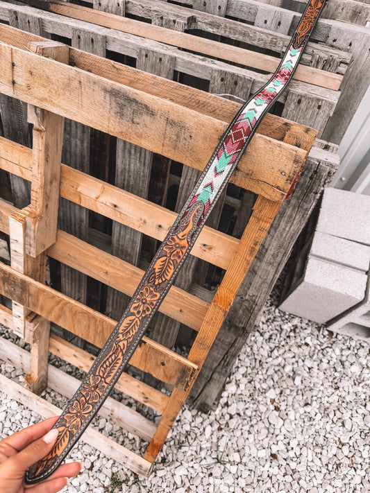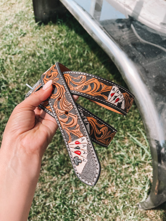 Aces Tooled Leather Belt