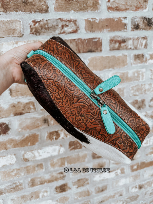 Sold outTyler Turquoise Cowhide Makeup Bag