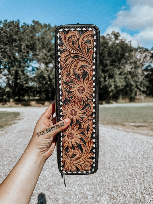 Black Tooled Leather Cowhide Iron Case