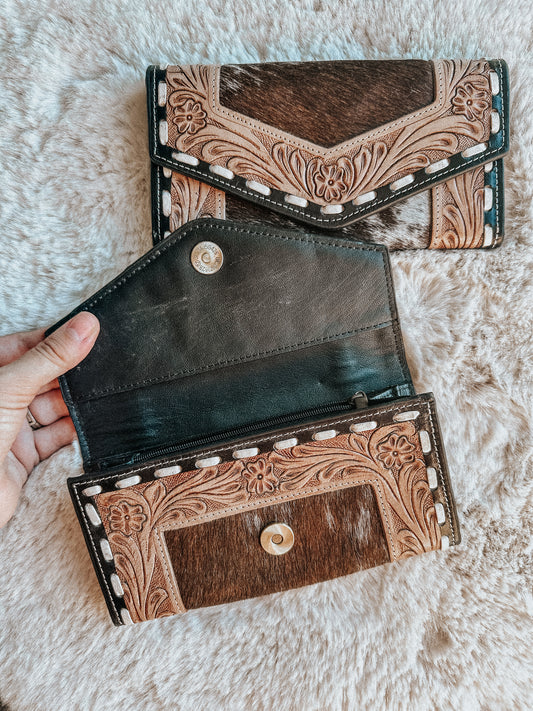 Sold outRound Western Cowhide Wristlet