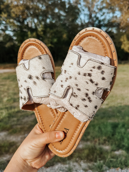 Daleena Cowhide Sandals in Black