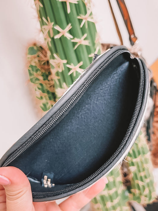 Cowhide Fringe Concealed Carry Crossbody in Turquoise