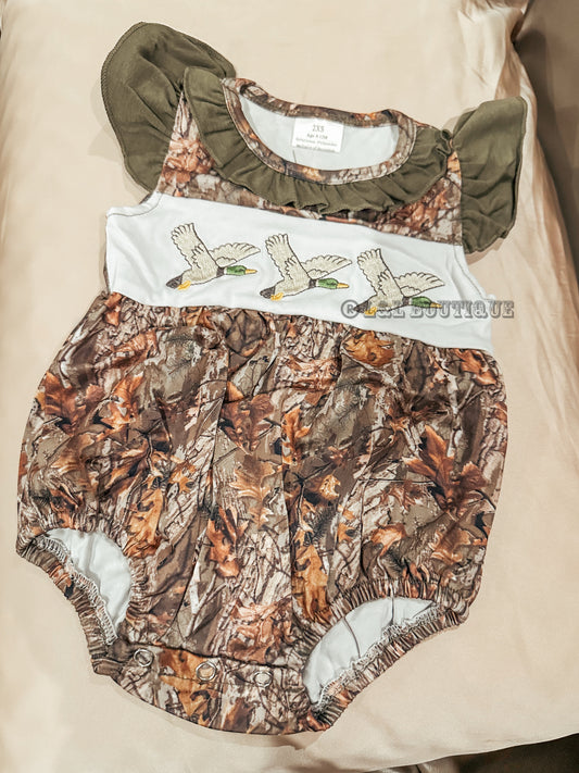 Girls Camouflage Duck Ruffle Onesie