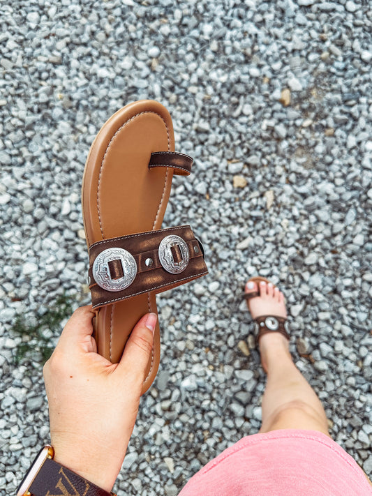 Sagebush Concho Leather Sandals in Brown