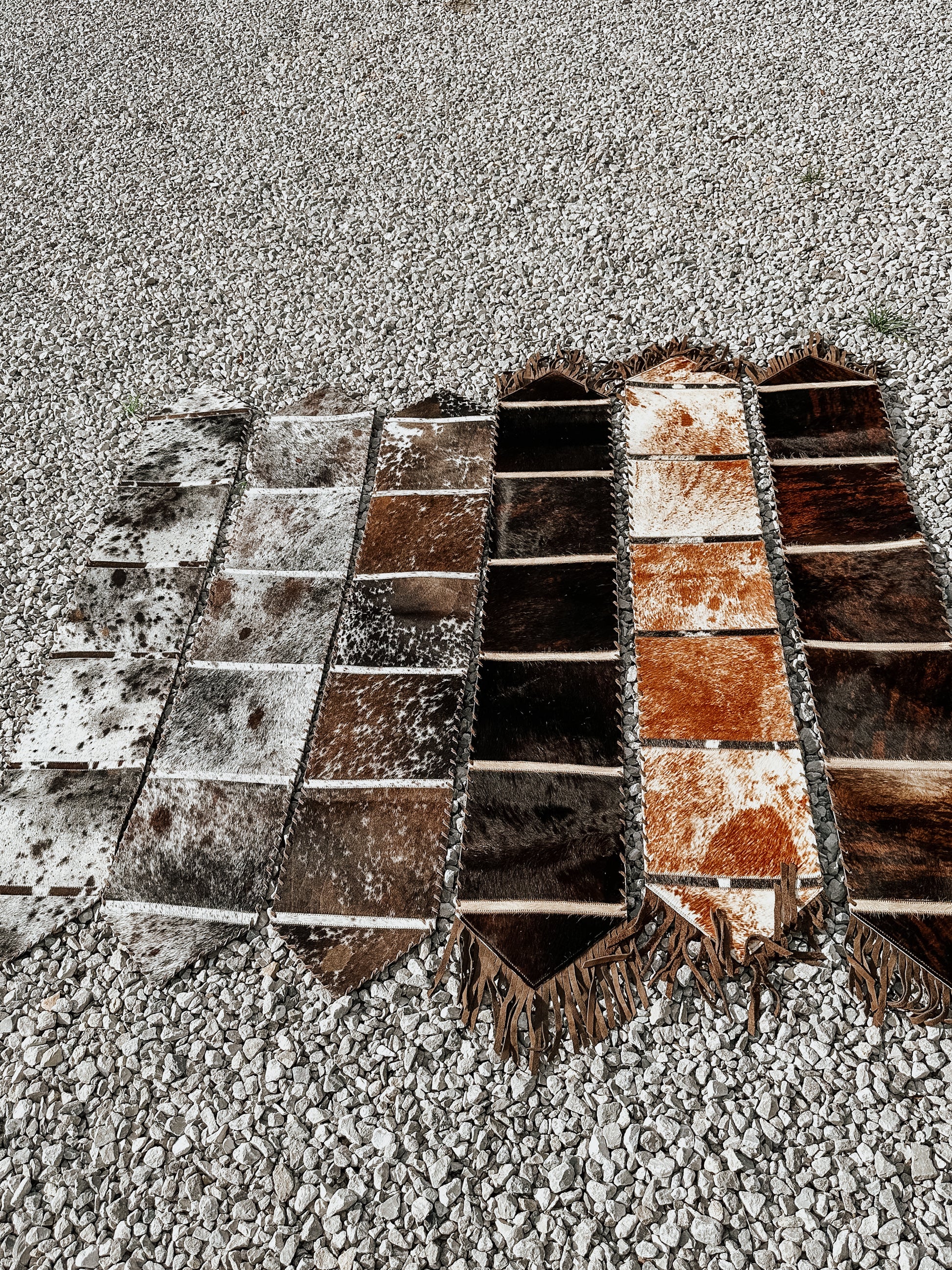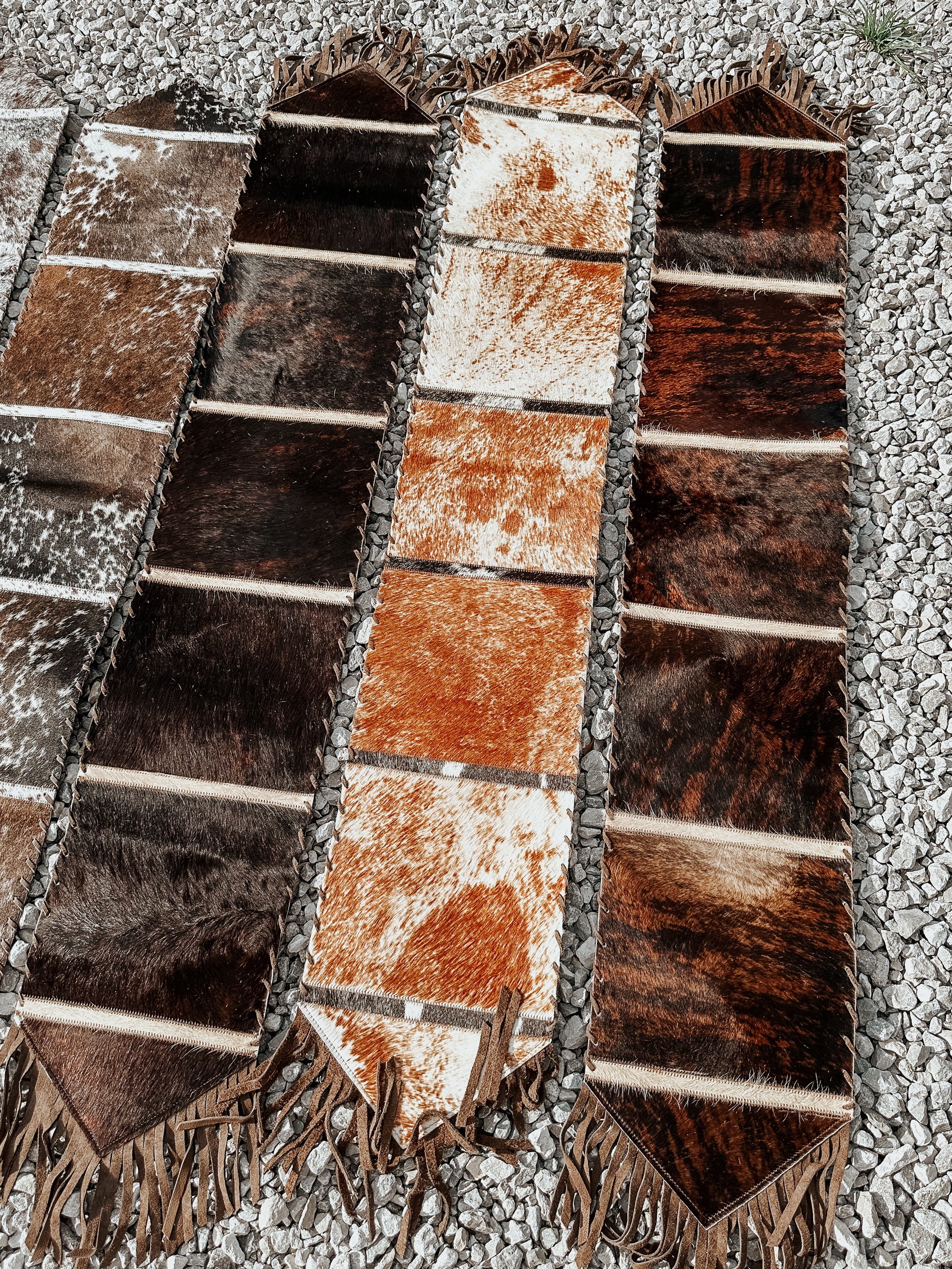 12” wide 6 feet long. Hides vary! Fringe or no fringe options!