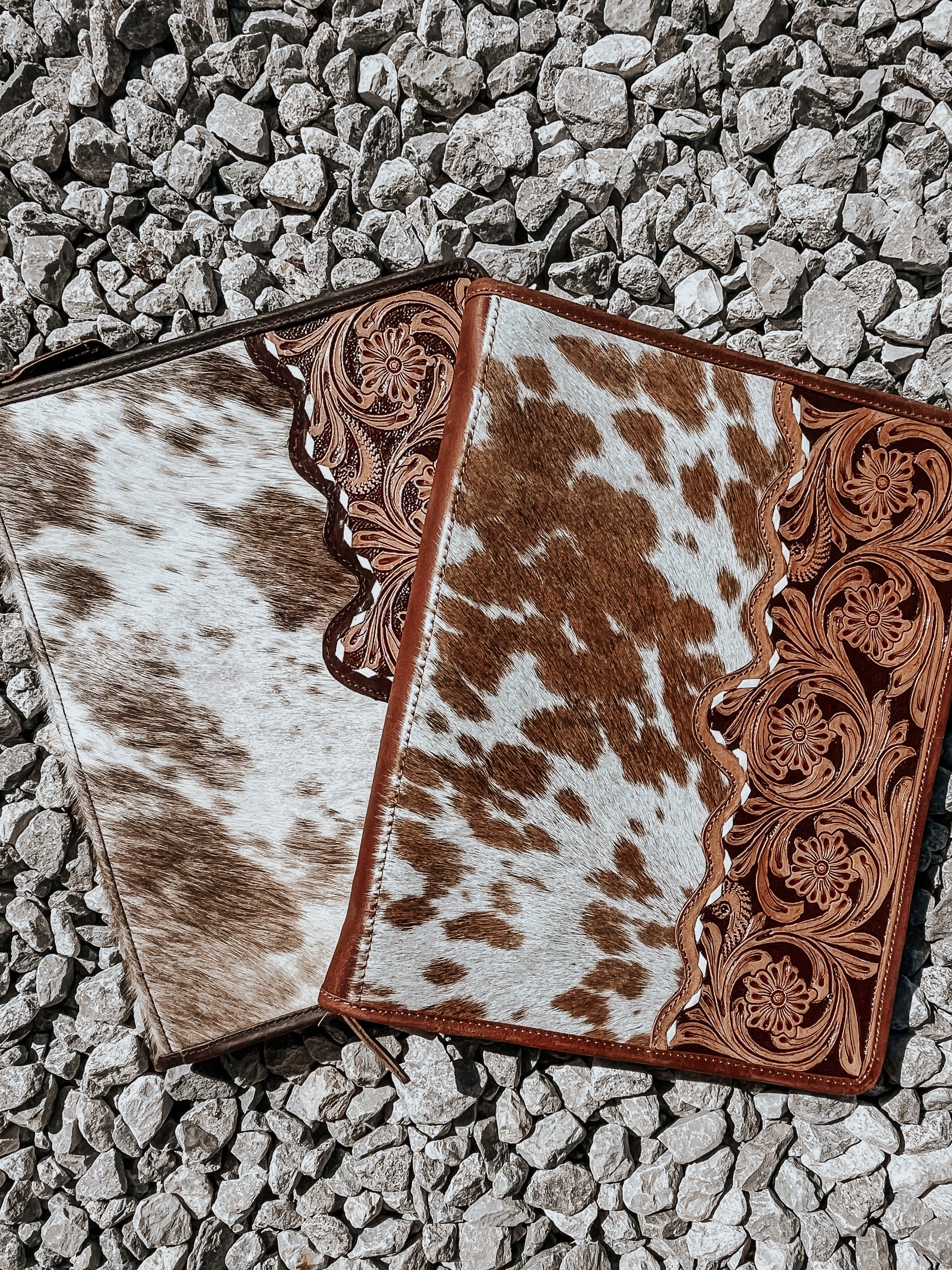 Cowhide on the outside, Leather on the inside! Pockets for all your needs and a clip to be used as a clipboard.