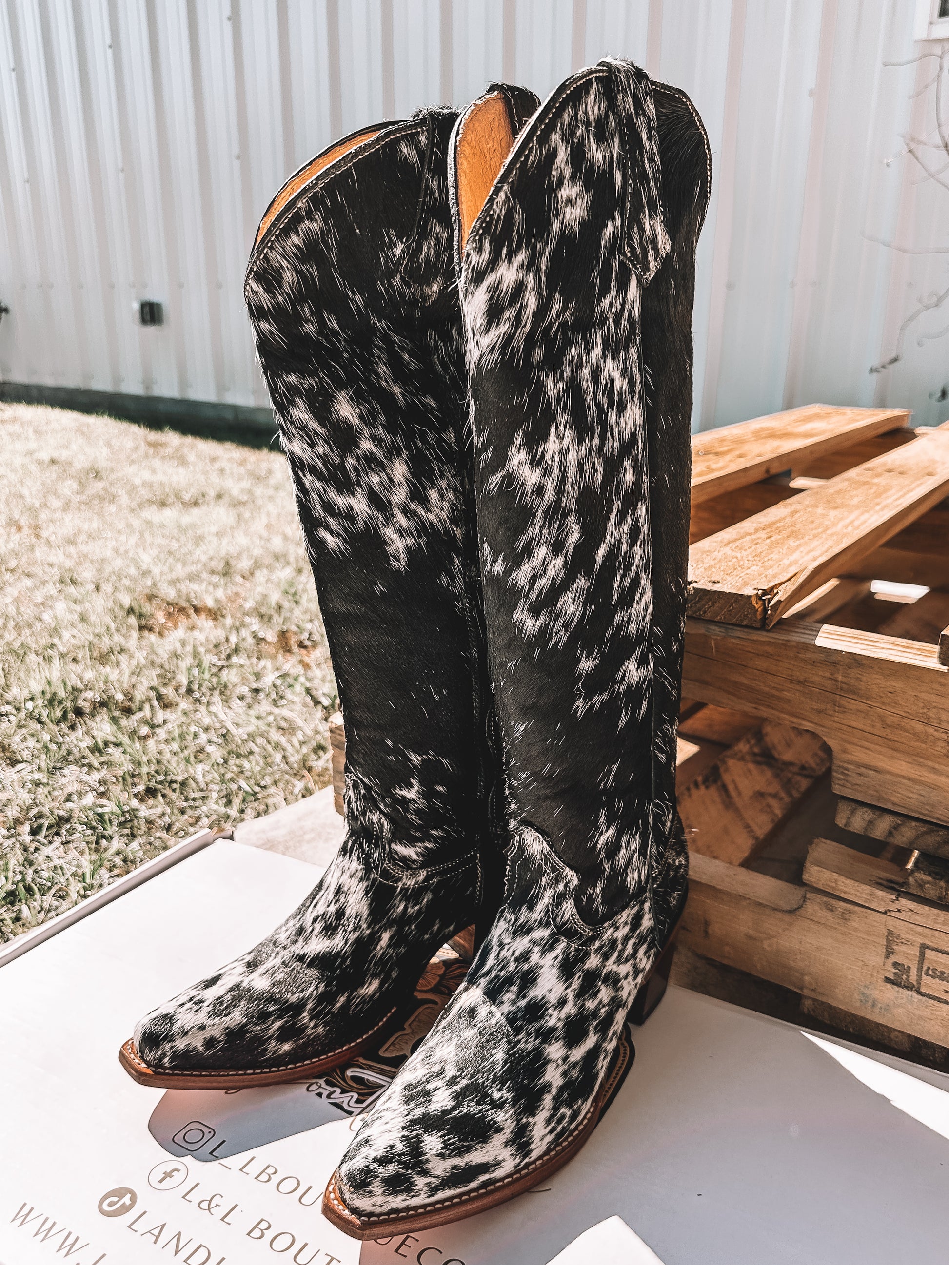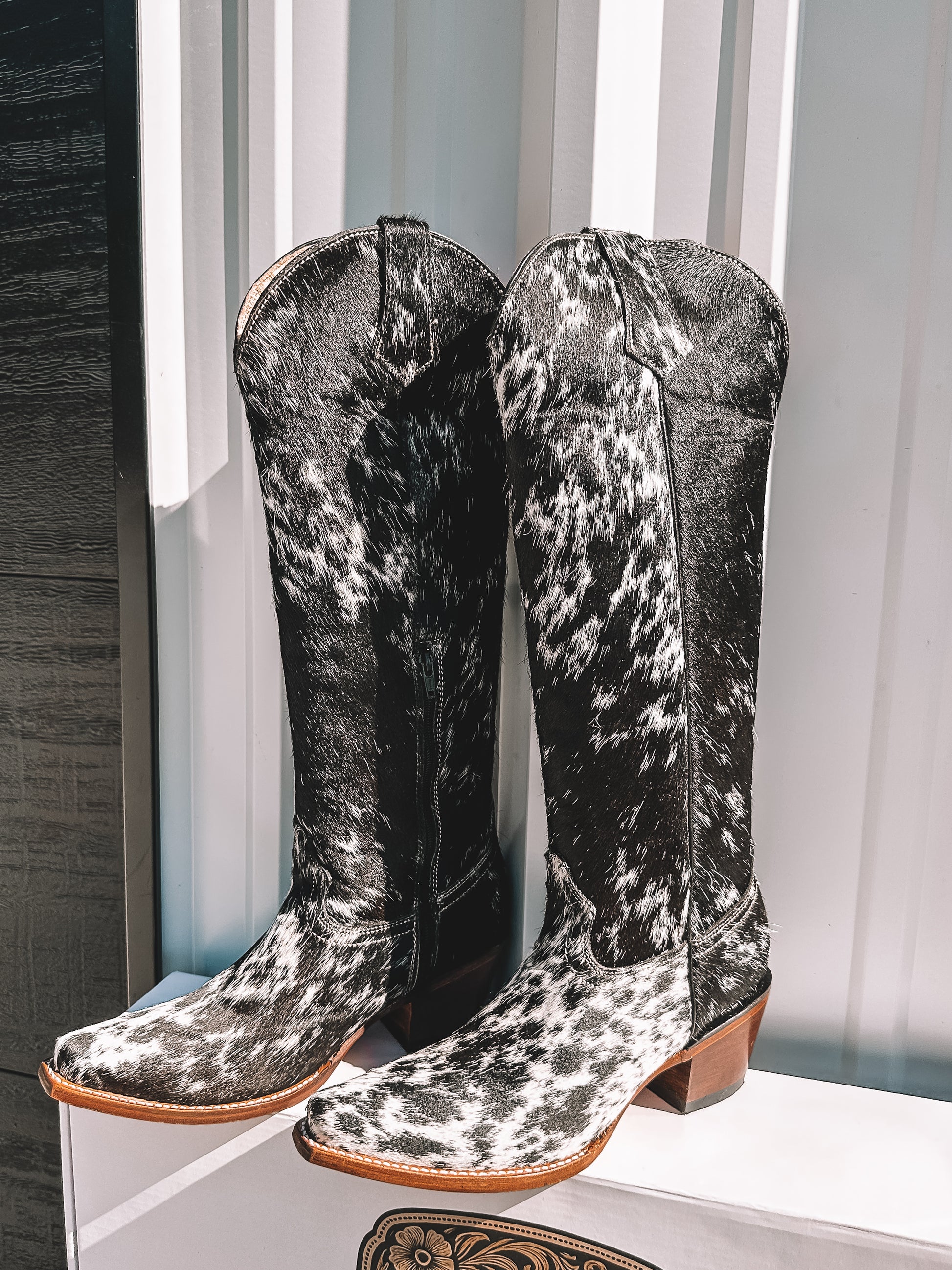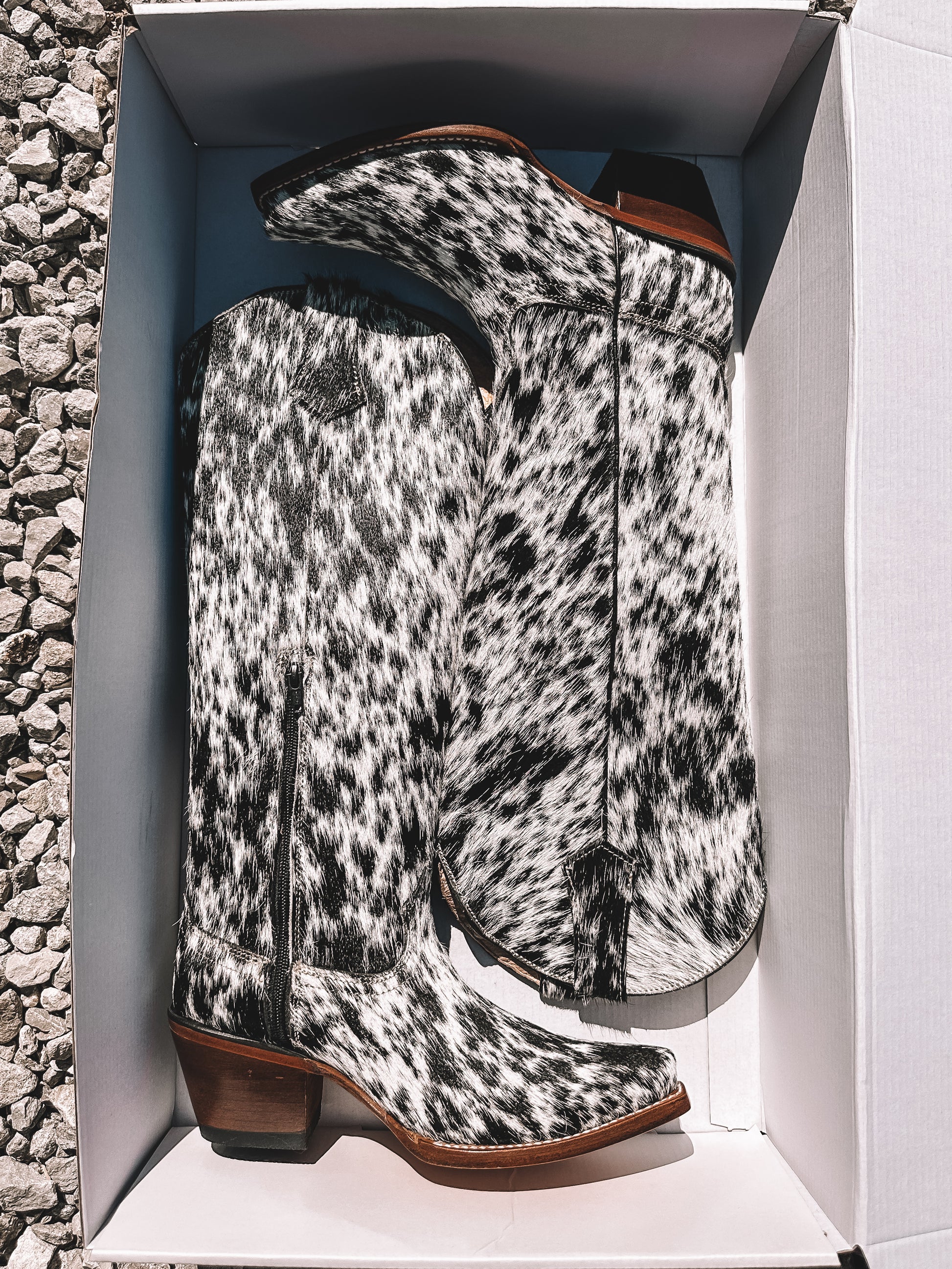 Hides vary, they will all be black and white. Snip toe. True to size! Half size, size up!