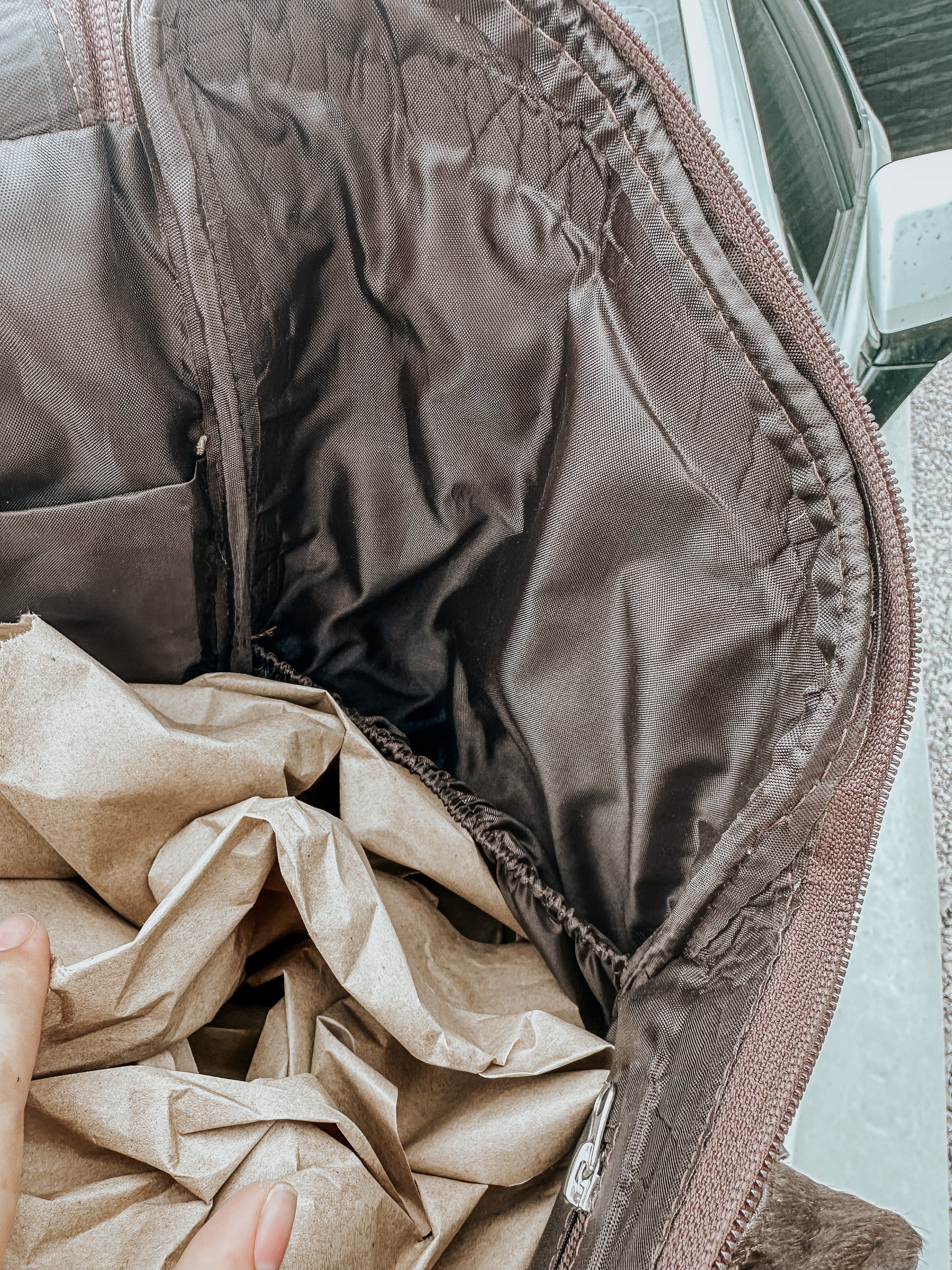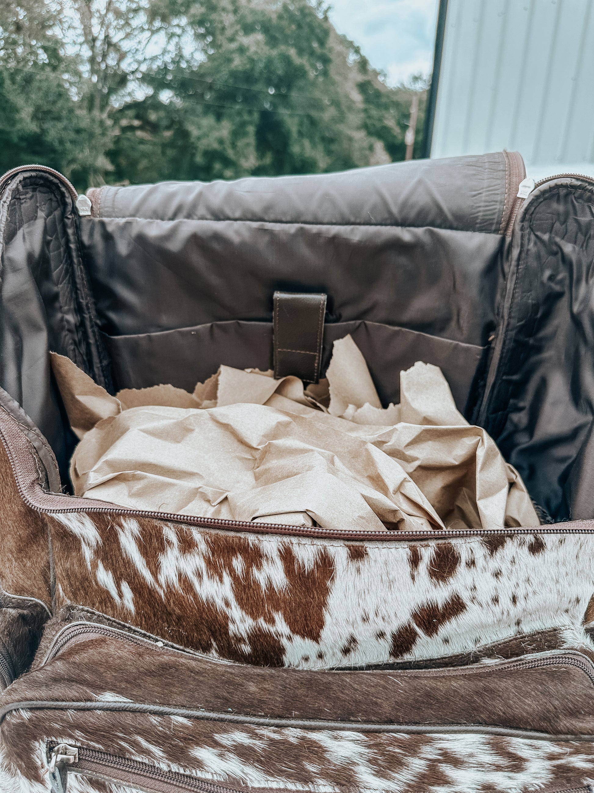 3 huge pockets! 16x13x6” 2 sturdy leather straps- also makes the PERFECT diaper bag!! HIDES VARY