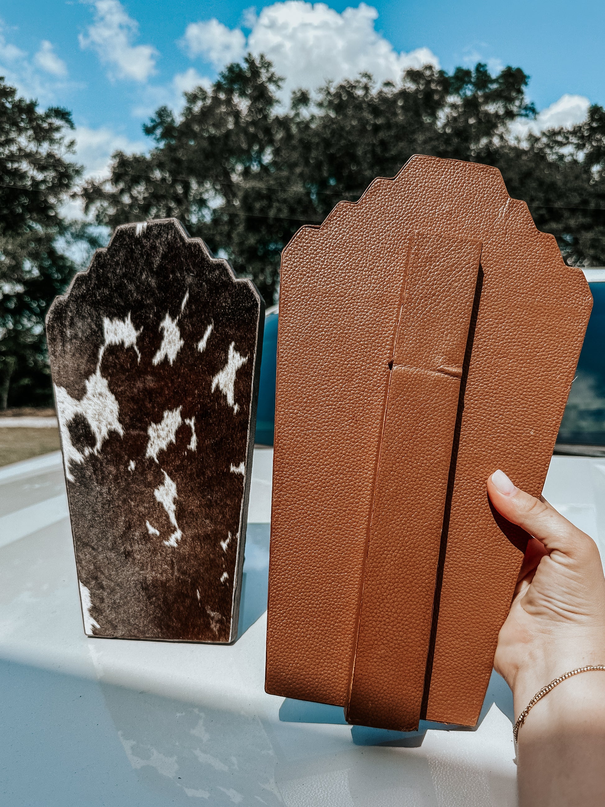 Wooden Cowhide Necklace Stand
